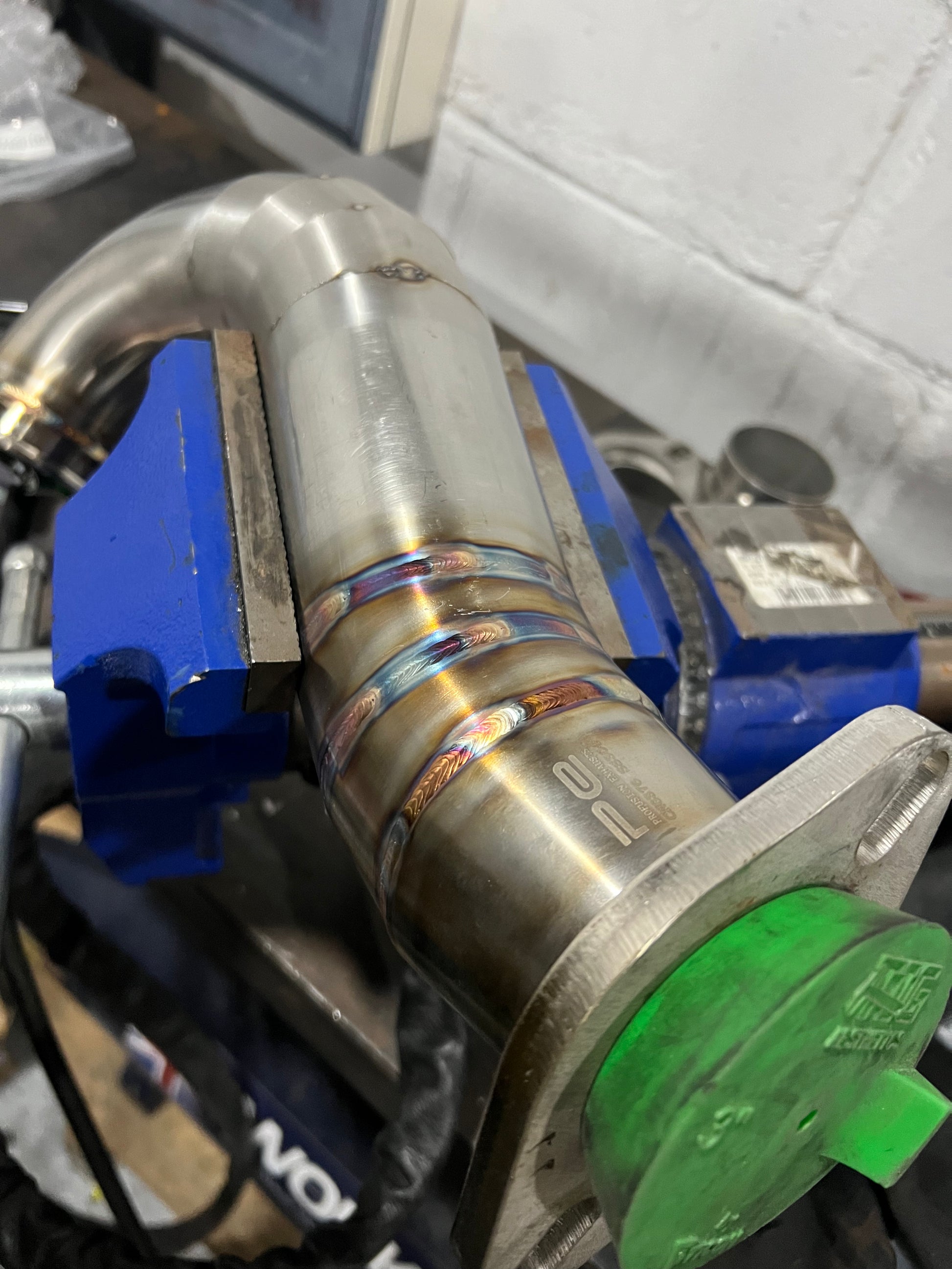 Custom 3 inch Stainless Steel DE-CAT Downpipe made to fit Abarth 595/695 models with a Garrett GT1446